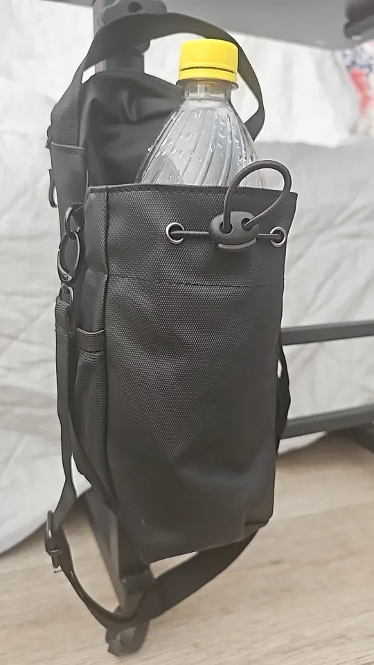 Den elastiska flaskhållaren håller din vattenflaska stabil och lättåtkomlig mellan seten – precis där du behöver den. I det rymliga huvudfacket får du plats med handduk, träningstillbehör, snacks eller vad du än har med dig.